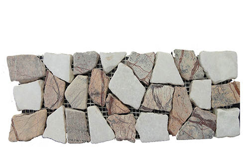 Highlighting the beauty of the Classic random, the random border displays the natural stone design in a border application. These tiles are made from stones of random shapes and sizes, put together harmoniously. Our hand selection process ensures that the installation remains unique to you. The uniqueness of the collection makes it perfect to be used in conjunction with any ceramic-based tile as the border running around the side, or it can be used in bathrooms or living room highlighting the natural look of the area.