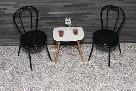 The natural beauty and geometric complexity of a honeycomb have been admired for ages. Through this collection, our designers wanted to bring to life the mesmerizing beauty and complexity that hides in nature through the Honeycomb series. The Honeycomb Pebble features the classic hexagon outer made using stones carefully placed around the perimeter creating a geometric halo. The collection can be the best features on patios, floors, and swimming pools.