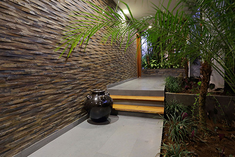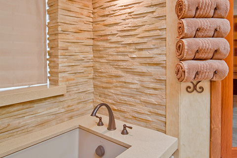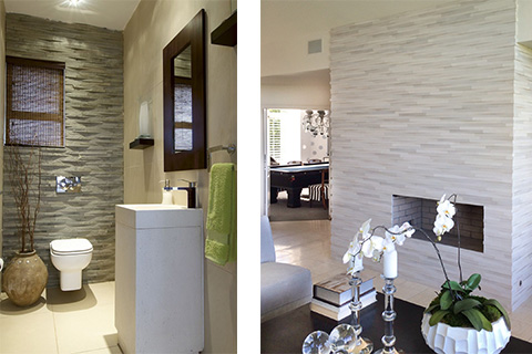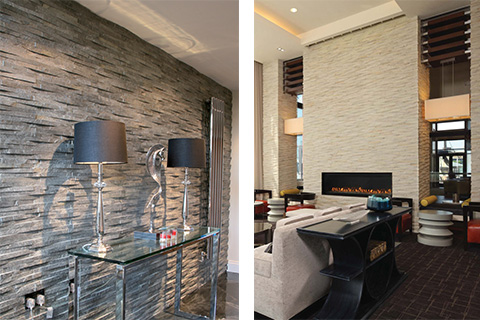 Relief cladding interlocking system offers a relief pattern in mesh mounted design, distinguished by the natural textured relief of the wave-like pattern of the stone. Un-even surface combined with the subtle color variations, create an ideal product for any wall or surface that needs emphasis. The narrow tile offers various stacking arrangements, both horizontally or vertically, each creating a stunning effect.